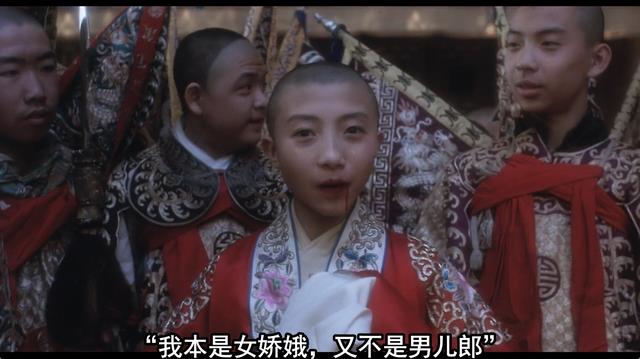出处:小石头用烟斗捣小豆子的嘴巴,直到出血为止,小豆子才终于唱对台词“我本是女娇娥,又不是男儿郎”,此前一直唱错为“我本是男儿郎,又不是女娇娥”。