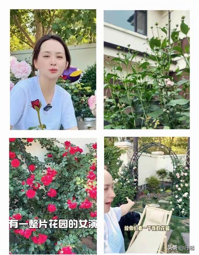 我们一起来看看节目一开始,邓莎出现的场景,她给观众们展示的就是她的豪宅,独栋大别墅,超级大好几层楼,不仅如此,她还有一个超级大的独立花园,字幕还很贴心地写了一行字:拥有一整片花园的女演员。