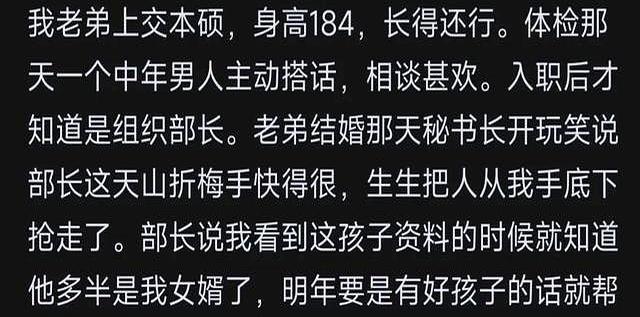 网友@小城生活说:县城的选秀大会是真的,公务员、医生报到那天,领导们都像挑白菜似的,优质资源早被抢没了。