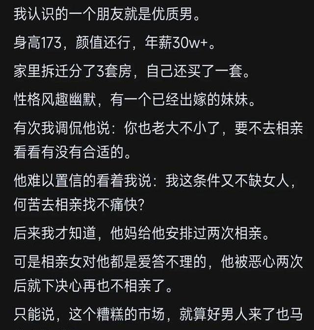 你觉得到底是“好男人被提前锁定”,还是“剩下的人不够好”?
