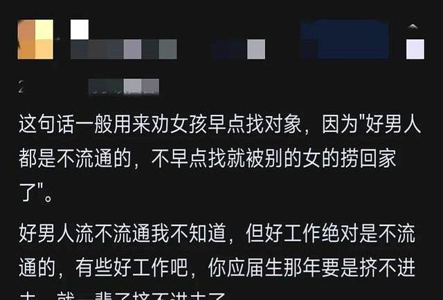 网友@小鲸鱼说:说真的,我身边条件好的男生还没毕业就被圈走了,家长、老师、亲戚都下场,根本轮不到外人。