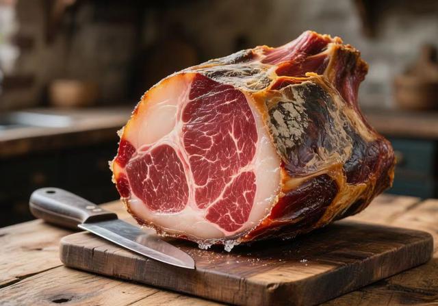 家用“风干火腿胚”+盐+花椒+冰箱风干30天,切片“玫瑰+松香”,虽无三年,也能“半步成妖”。