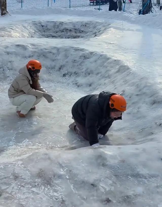 这滑稽场面迅速引发了网友的热议:“东北人:这俩是来给冰坑送温暖的?”“南方朋友对冰雪的执念,就像我们对雪的渴望一样真挚又莽撞。”