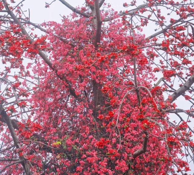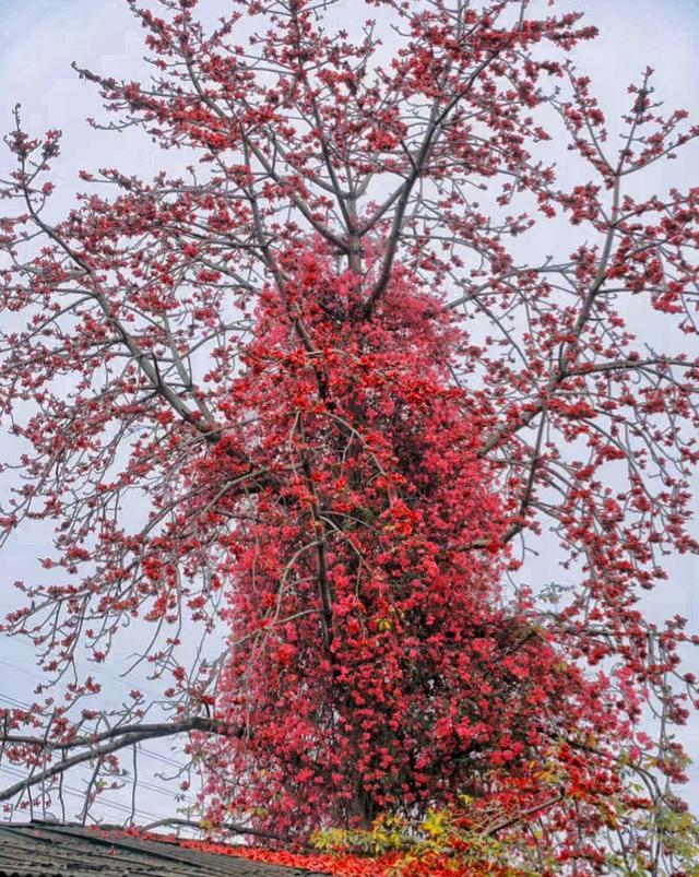 “木棉+三角梅=红到发紫”,广州人朋友圈最近被这棵树刷屏。 不是滤镜,不是P图,它就长在白云大沥村口,一抬头,两团火烧云叠在一起,像谁把春节直接挂到天上。