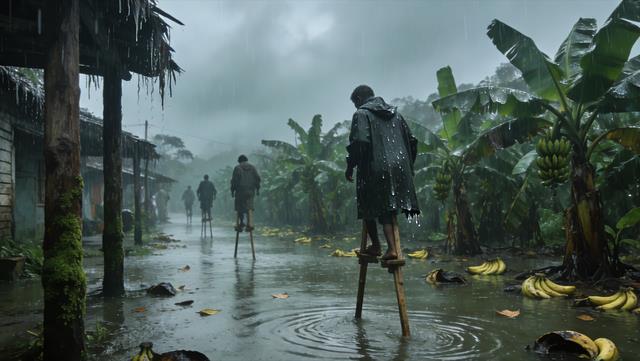 【经典选段】马孔多的暴雨下了四年十一个月零两天,没有一刻停歇。雨水漫进了屋子,漫过了街道,漫过了香蕉林,整个马孔多变成了一片泽国。屋顶的茅草烂了,墙壁的土坯化了,家具泡在水里生了霉,人们只能踩着高跷走路,说话的声音都带着湿气。生活变得毫无希望,人们不再欢笑,不再交谈,不再期待明天,只是麻木地活着,在无尽的雨水中,孤独被放大了无数倍,像潮水一样,将所有人淹没。