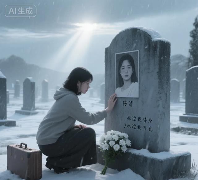 离开北京的前一天,陈雪独自去了墓地,想去看看这个“她”。陈雪轻轻擦拭墓碑,看到了右下角有两行小字:“原谅我找替身,原谅我当真”。