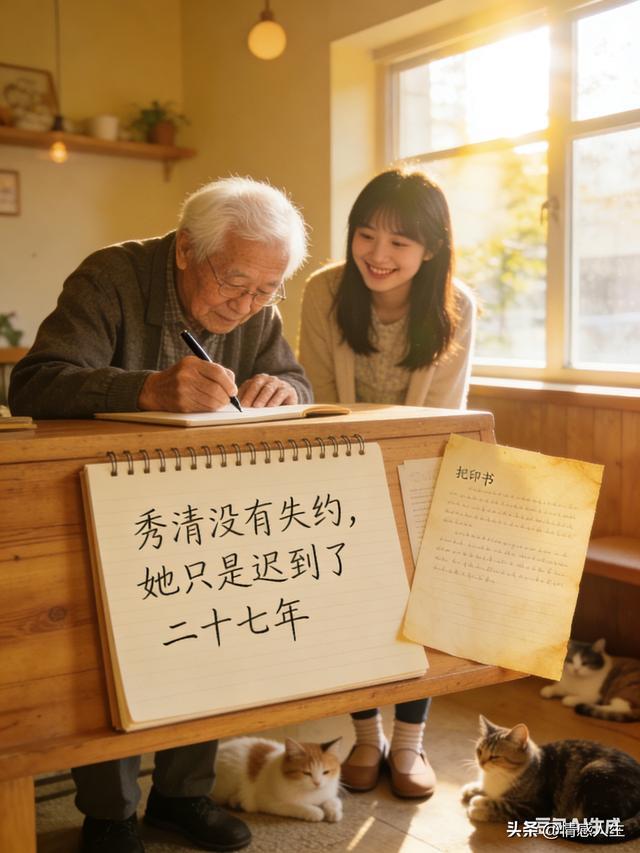 故事的最后,林晚把那封情书复印了一份,原件留给了陈爷爷。陈爷爷在猫咖的留言本上,给1998年的那个自己写了一句话:“秀清没有失约,她只是迟到了二十七年。”