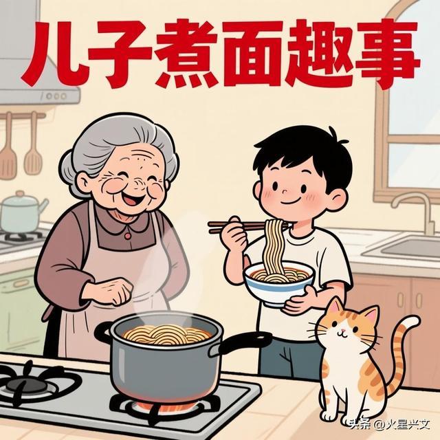 5.儿子跟奶奶学煮面条,奶奶说:“面条浮起来就熟了。”20 分钟后,儿子端着碗出来,碗里只有三根面条漂着。奶奶问:“锅里的呢?” 儿子得意:“沉底下的都没熟,我捞出来喂隔壁小猫了,它说谢谢我呢!”