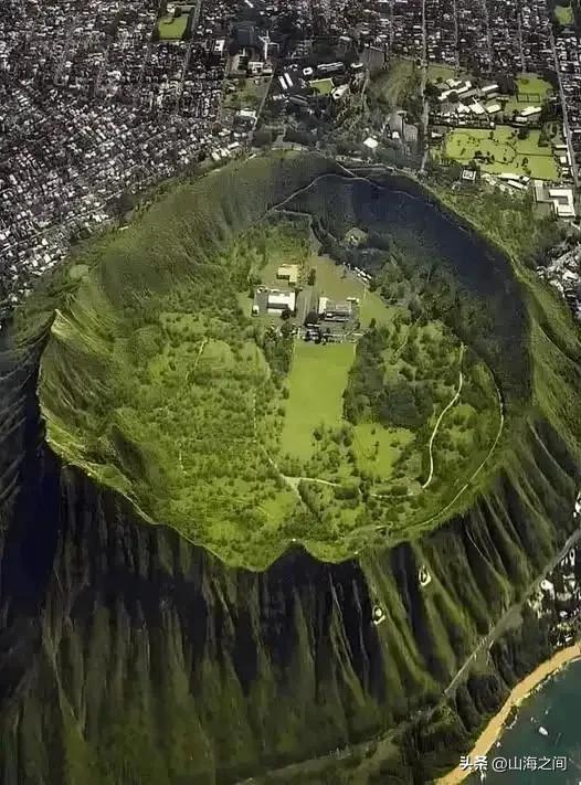 17.夏威夷欧胡岛上的钻石山,其实是50万年前的火山灰结晶体。从高空俯瞰,形似一颗巨钻,熠熠生辉