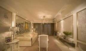 2018精致现代简约客厅镜面背景墙装修效果图片