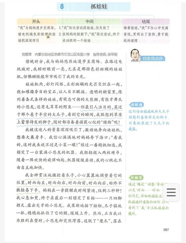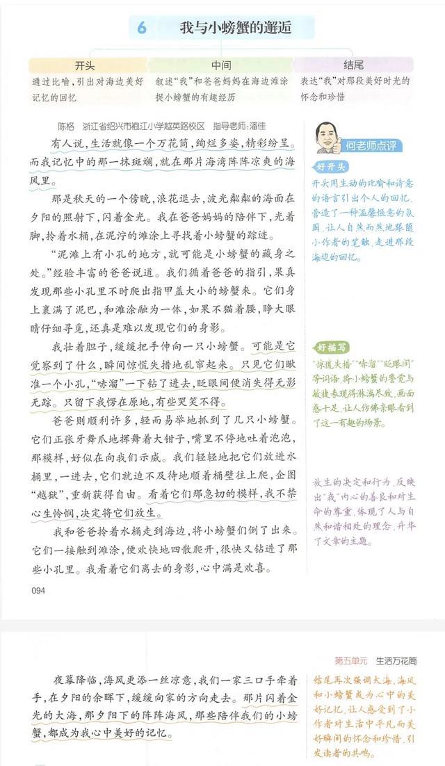 比如课文《爬天都峰》,它就是按照爬山前、爬山中、爬山后的顺序写的,写的时候要把看到的、听到的、想到的都写下来。