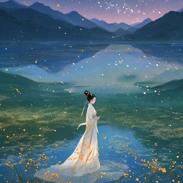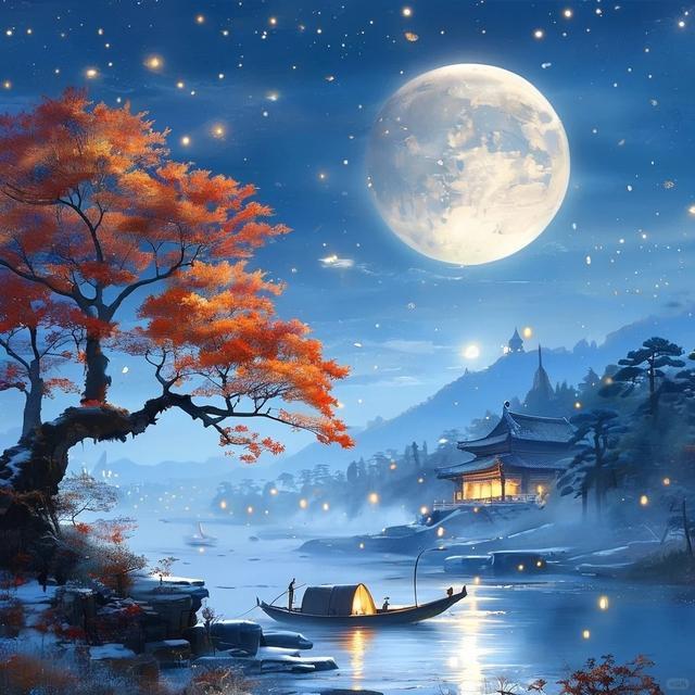微风吹过,在水面泛起层层细浪;那一点孤灯的倒影,瞬间被散开,化作满河的星星。