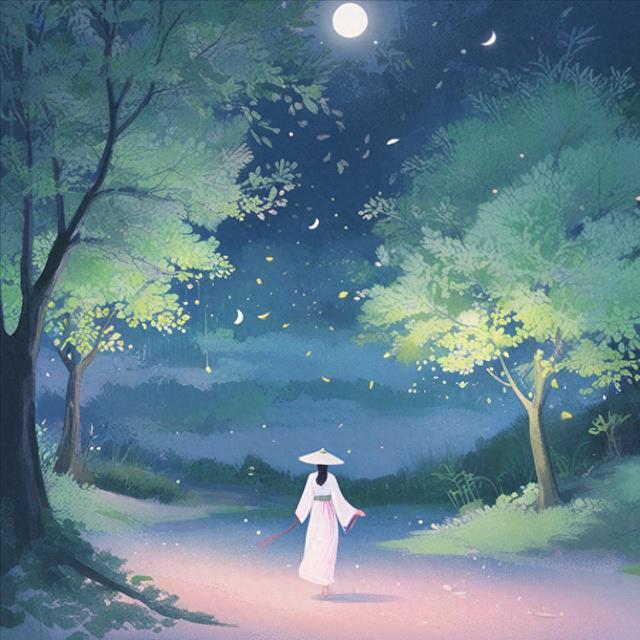 皎洁的月光从松树的枝叶间洒落,在地上投下斑驳的光影;清澈的泉水在山石上潺潺流淌,发出清脆悦耳的声音。