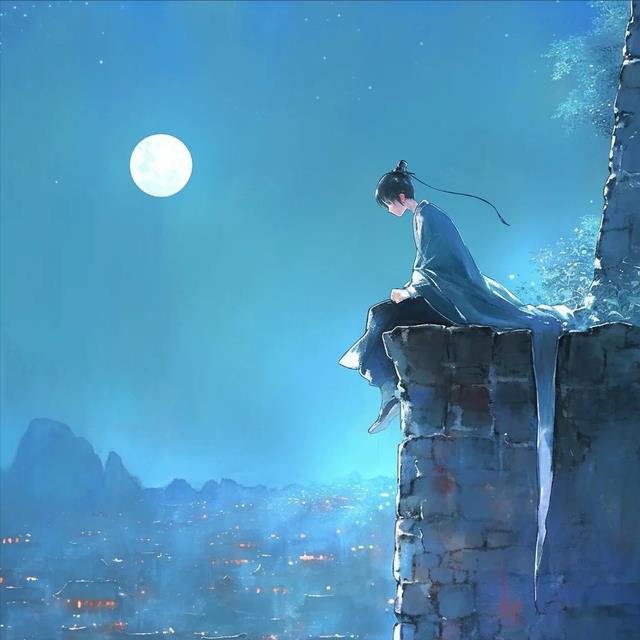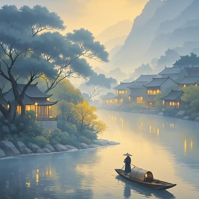 在漆黑的夜晚,没有月亮,唯有江上的一盏渔灯亮了起来,那孤独的微光,如同黑暗中一只萤火虫。