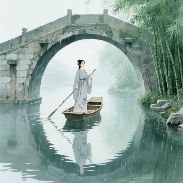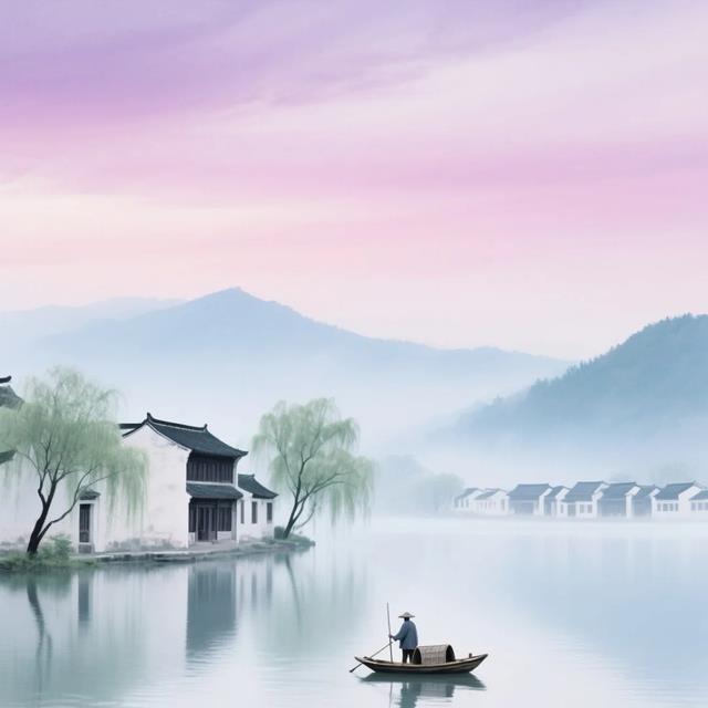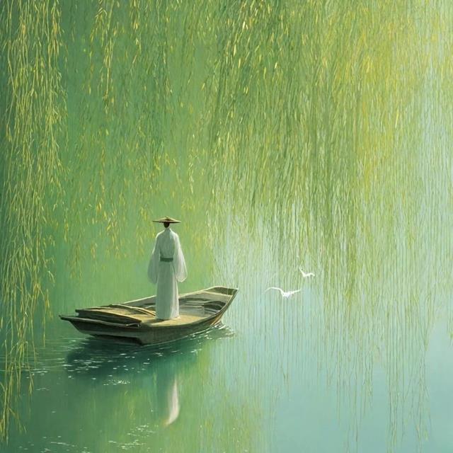 小船在若耶溪上自在漂浮;溪水与天空融为一色,悠远而宁静。