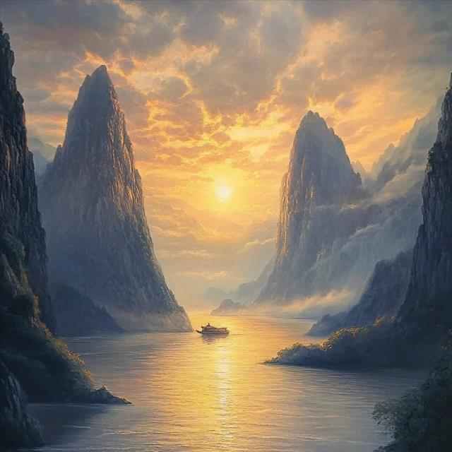 江水浩浩荡荡,仿佛流淌到了天地之外,消失在无尽的远方;远处的山峦,在云雾缭绕中若隐若现,似有似无。