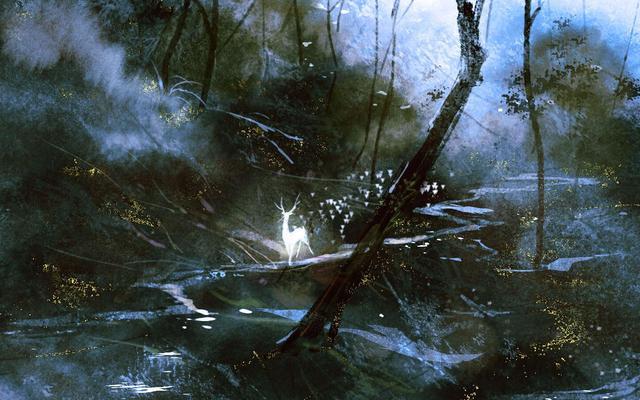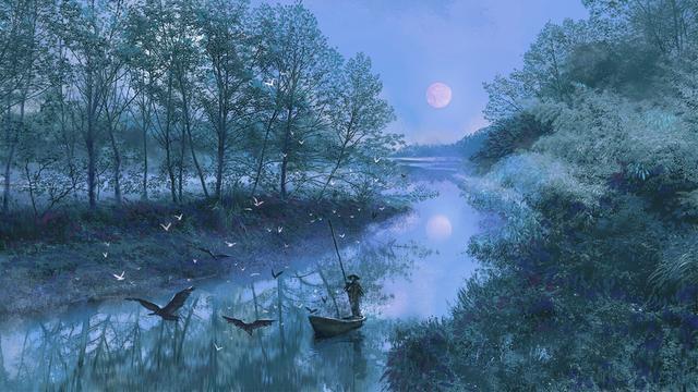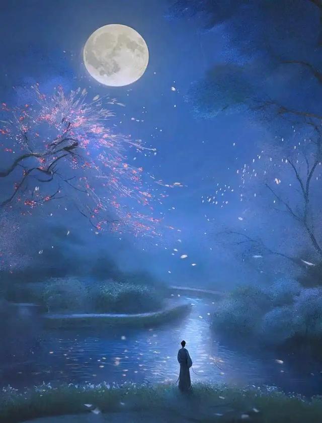 梦里化鹤的仙逸,人间草萤的空灵,配山月朗朗,意境超然。读来清心涤虑,满是脱尘的淡远仙气。