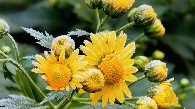 万朵金菊绽冷晨,一轮红日照黄昏。