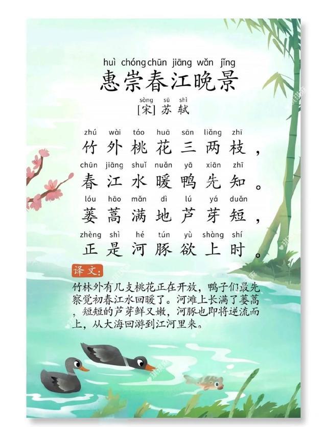 苏轼笔下的春游,藏着生活的烟火与意趣。《惠崇春江晚景》中,竹林外桃花初绽,春江水暖,鸭子最先知晓,蒌蒿满地,芦芽鲜嫩,正是河豚欲上之时。诗中有画,画中有味,将江南春日的景致与风物融为一体,春游的闲适与鲜活,跃然纸上。