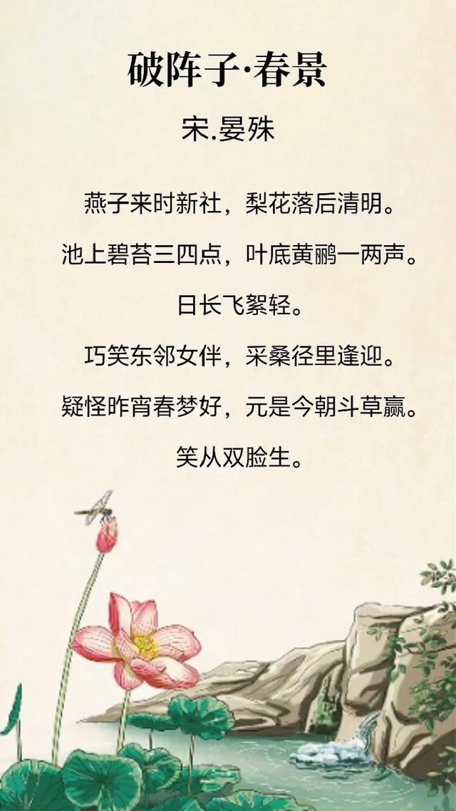 晏殊的《破阵子·春景》,则是春游里最有生活气息的篇章。燕子归来,梨花飘落,池边碧苔点点,叶底黄鹂声声,飞絮轻扬,春日悠长。采桑路上,少女相逢,笑靥如花,只因斗草得胜。没有宏大的景致,只有寻常的春日小事,却将春游的快乐写得纯粹又温暖。