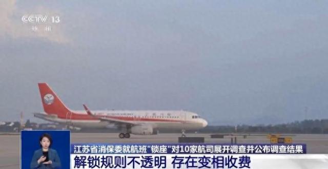 “从锁座区域看,10家航司的锁座范围基本趋同,普遍将经济舱前排、安全出口旁、靠窗及靠过道等消费者偏好的优质座位纳入锁定范畴。”——江苏消保委