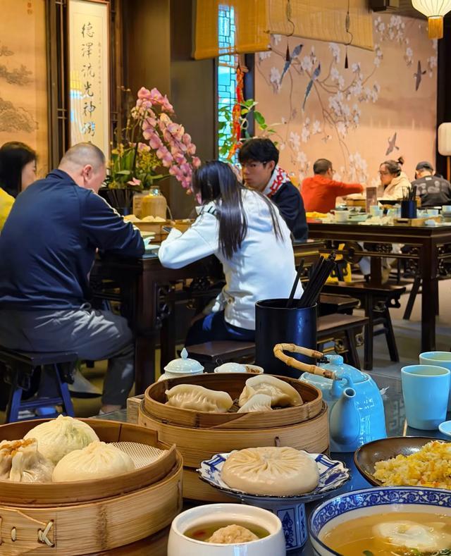 我喜欢吃这里的蟹黄汤包,一定记得先要用吸管小心地戳开一个小口,慢慢吸那口鲜得掉眉毛的汤汁;烫干丝,豆腐丝,浇上麻油酱油,在拌开了吃是真的舒服,再配上五丁包,包子里的鸡肉、猪肉、笋丁、虾仁、海参,每一口都能让自己的味蕾感受到温暖。