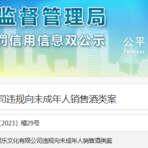 中国质量新闻网讯(闫冬)近日,深圳市市场监督管理局公布一则行政处罚决定书。深圳市宫廷娱乐有限公司因向未成年人销售酒类被市场监管部门查处。深市监光处罚〔2023〕玉塘41号显示,该公司被深圳市市场监督管理局光 ...