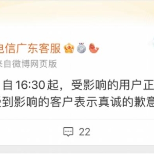 广东电信致歉:经紧急抢修,受影响用户信号正逐步恢复