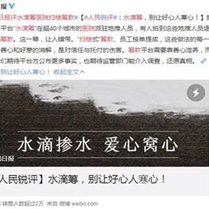 • 水滴筹医院扫楼筹款 人民日报:让好人寒心