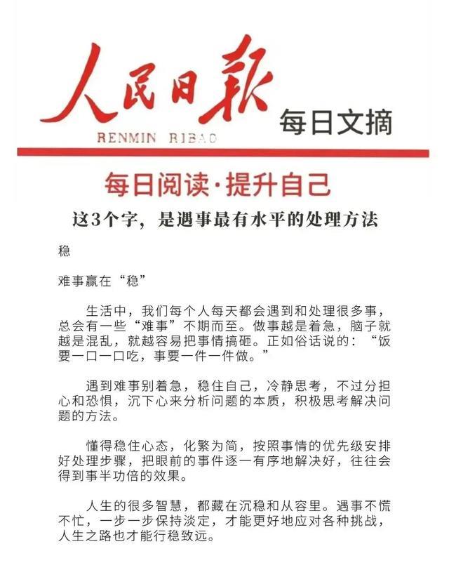 “稳”就是在遇到突发事时不慌张,也是在长期坚持中的耐心和节奏感。