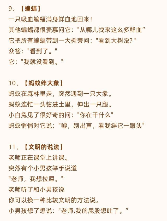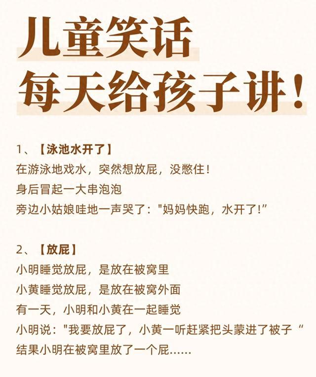 童年的快乐往往很简单,一个小小的笑话就能成为孩子一天里的开心源泉。家长们不妨把这些笑话记下来,每天和孩子分享,让笑声成为亲子间最温暖的纽带。