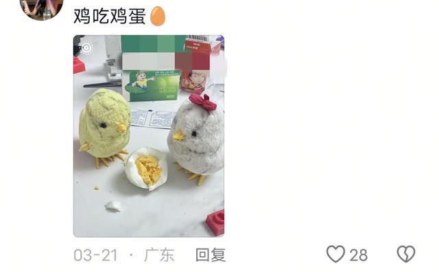 宝宝8:她养了两只小鸡娃娃,有一天她怕小鸡肚子饿,她拿了煮鸡蛋给小鸡吃。其实,也不是不行吧,毕竟有的人也会吃人。