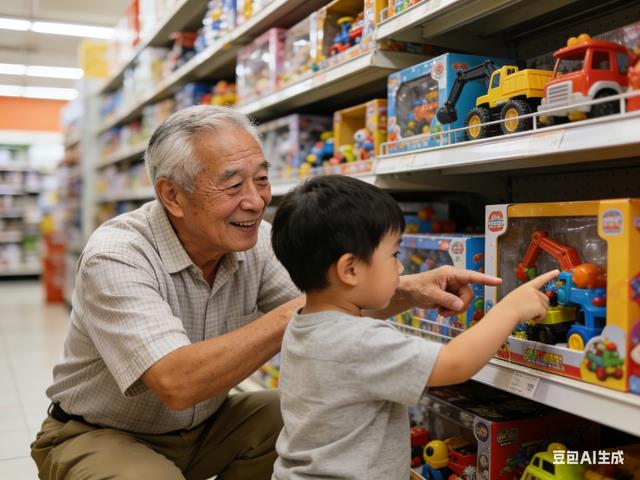 2. 带孙子去超市,他指着玩具说:爷爷我要这个!