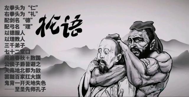 原意是孔子感叹时光如流水般流逝。以前国内经常玩孔子武力梗,故意翻译成“孔子静静站在河边,死去的敌人就像这河水一样,不分昼夜顺流而下。”