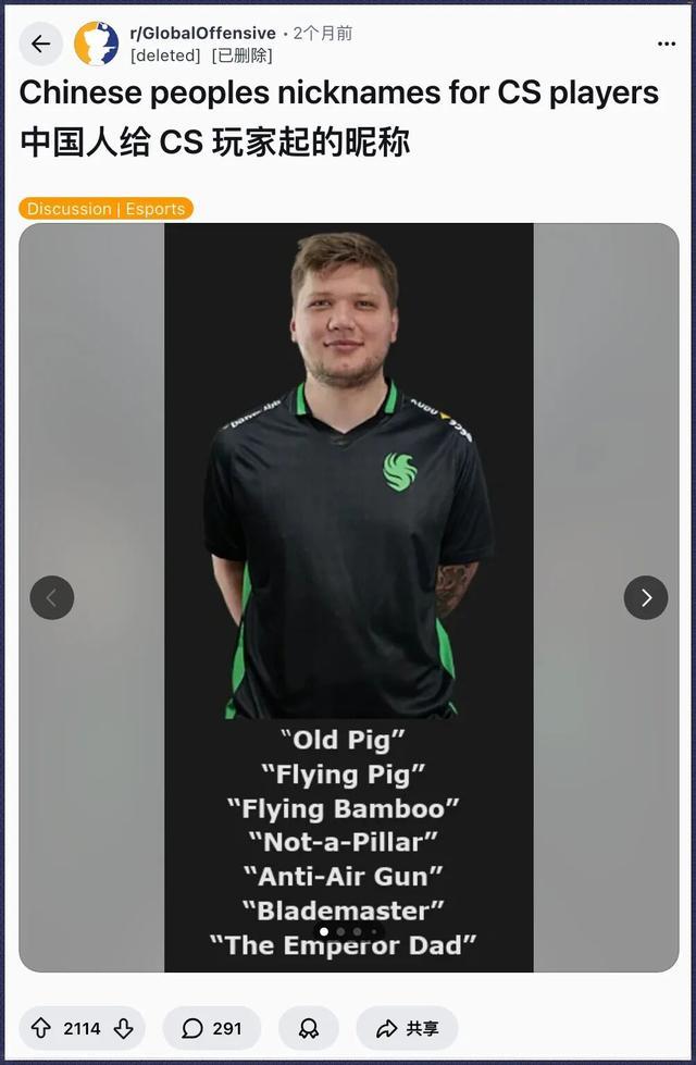 实际上,外网搬运中文电竞社区的帖子总体是越来越多了,而且往往流量不俗。比如这个讨论中国玩家给CS职业选手起绰号的帖子,也有相当高的热度。