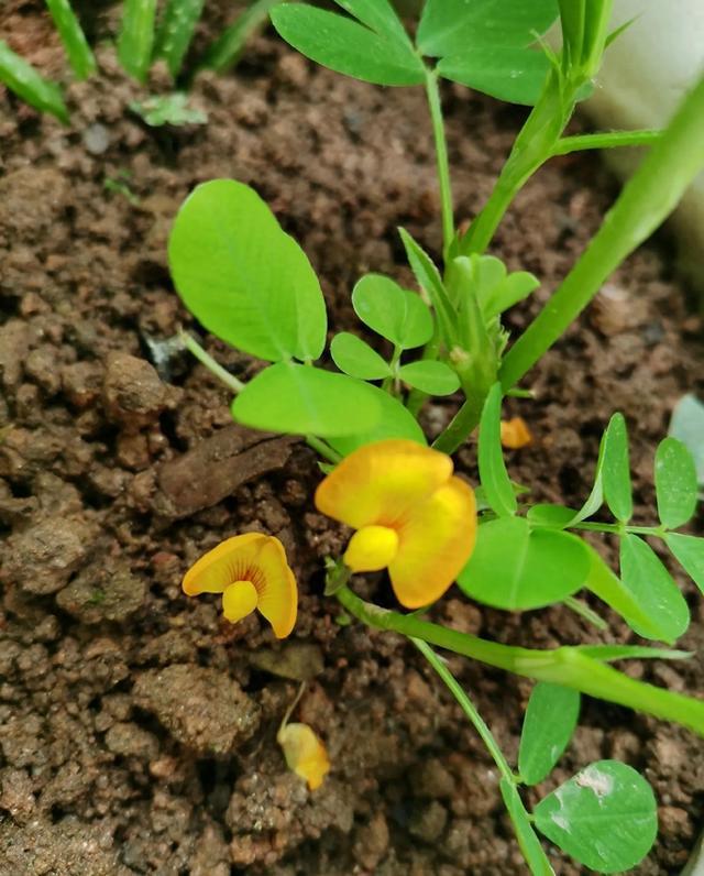 约莫一个多月后,花生进入花期。淡黄色的小花悄然绽放,形似蝴蝶,点缀在绿丛中,朴素而清雅。然而,这美丽的景象转瞬即逝。数日后,黄花开始凋谢,这时便发生了花生生长过程中最动人的一幕——子房柄从花萼管中长出,如一根根绿色的“针”,执着地伸向地面。