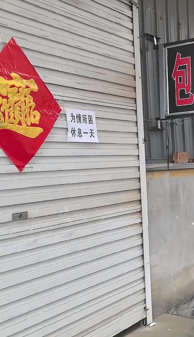 近日,网友发布的视频显示,在河北沧州市青县的华联孔雀城南门一条街,每家店铺均张贴了不同原因的歇业通知,包括“为情所困休息一天”“隔壁休息我也休息”等。10月7日,店主周先生表示,10月6日是中秋节,全部店铺歇业放假,他逐户张贴打印好的贴纸,图个娱乐,目前均恢复营业。