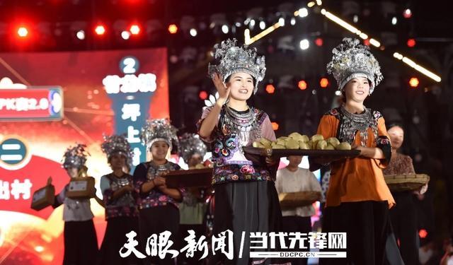 如今松桃“村晚”大流量,不断触动消费大市场,松桃“村晚”从单纯的文化展演升级为“文旅消费引擎”,成了该地文旅融合全新业态和产业推介的重要平台。截至今年9月底,松桃“村晚”累计开展各类活动68场,吸引游客超50万人次,过夜游客超17.5万人次,带动茶叶、食用菌、苗绣、银饰、灰豆腐等50余种土特产推向市场,线上销售额突破1000万元,增加综合收入1800万元。