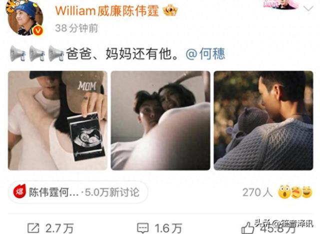 爆点 1:陈伟霆何穗官宣生子!143 万热度坐实四年秘恋