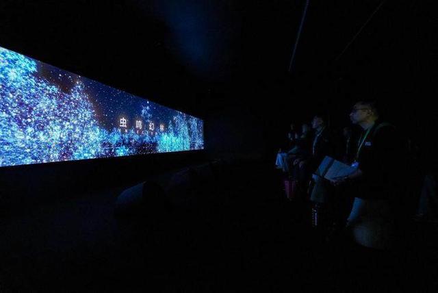今年,索尼将参观者面前的这块屏幕升级为横10米、纵1.5米的“超宽屏”,结合中国山水画“借景”手法,融入自然景观、周边水域及群山等元素,创造出空间的延展感与纵深感。同时不再使用实拍与动画形式,与RED团队合作进行数字艺术创作,融合“昆虫有机生命律动”与“光粒子编织的精密数字世界”,打造原创影像作品。除此之外,配套的“风”“振动”与“照明”相辅相成,还原了骑乘在昆虫背部的感受与类似蜻蜓复眼所见的奇幻色彩。