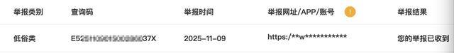 此外,部分网友认为该角色被塑造为衣着性感、姿态带有性暗示的“魅魔”形象,存在擦边嫌疑,与游戏受众中的未成年人群体不相适配。11月9日,极目新闻记者在互联网违法和不良信息举报中心查询发现,已有网友针对该角色提交举报,举报类别为“低俗类”“色情类”,目前举报状态显示为“您的举报已收到”。