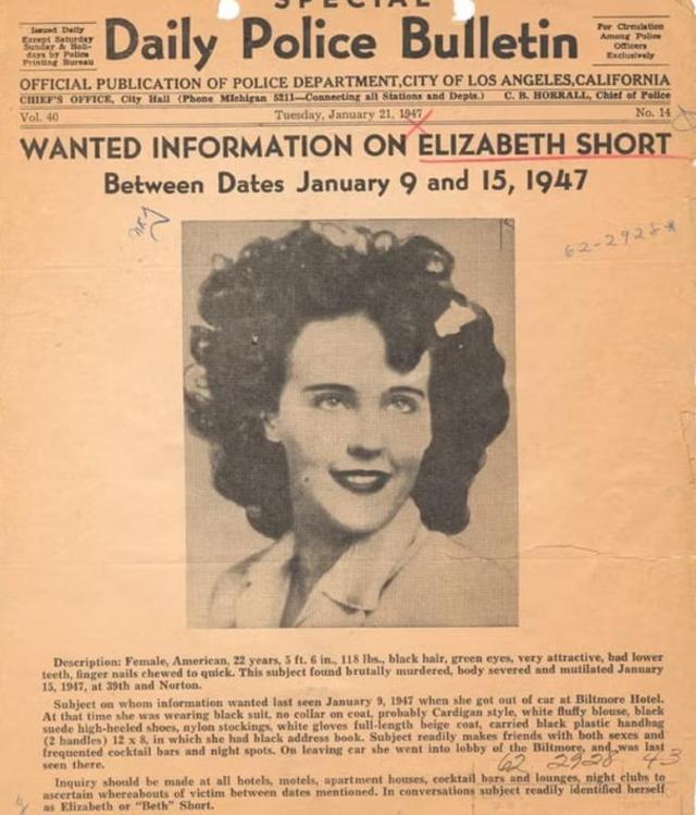 据了解,“黑色大丽花”事件是美国二战后最著名的悬案。1947年1月15日,22岁的女演员伊丽莎白·肖特的遗体在洛杉矶雷麦特公园被发现,其死状惨烈,案件曾轰动全美。由于伊丽莎白生前一头乌发且钟爱黑色衣物,加之当时电影《蓝色大丽花》的影响,媒体在报道中称她为“黑色大丽花”,此案也因而得名。