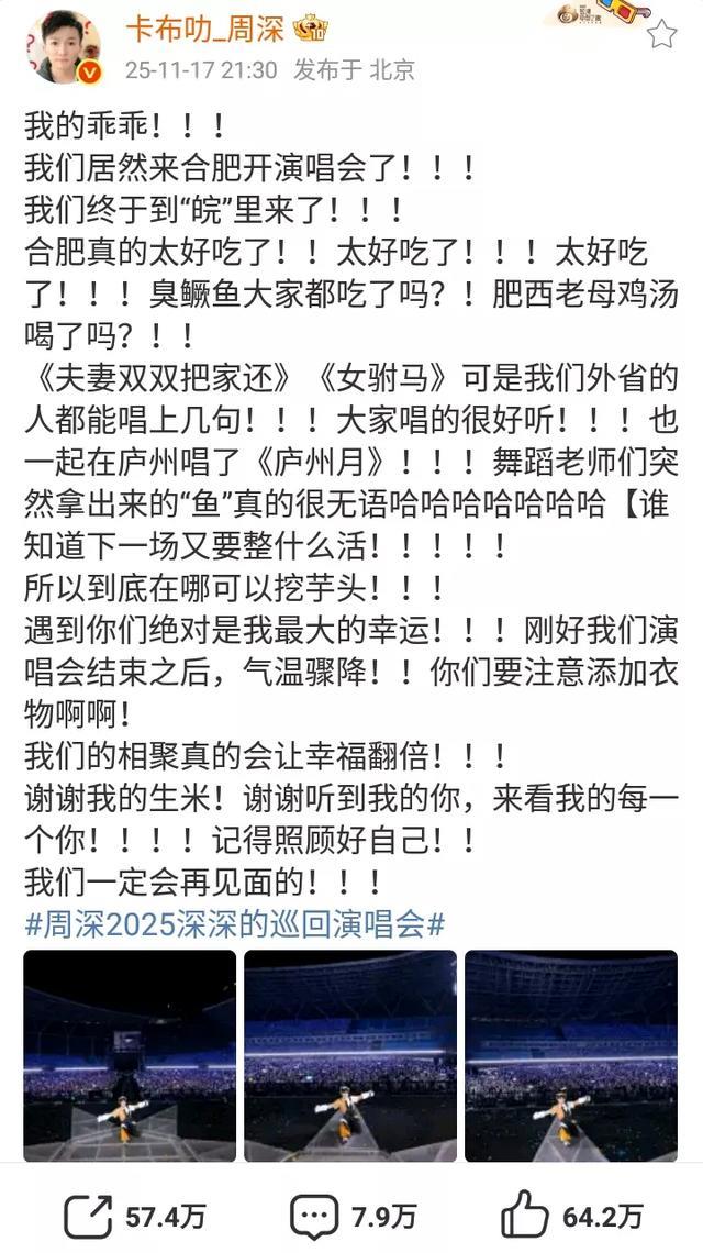 诚然,在2025年这一年中,歌手周深去过很多城市,参加了很多演出,也遇见了不同的歌迷,更是看到了不同地方的风土人情!