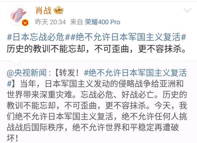 一句“历史的教训不能忘却”,点明了肖战的爱国主义情怀!
