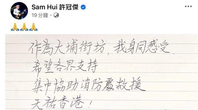 据悉,容祖儿等明星原本安排于27日傍晚出席香港迪士尼乐园《疯狂动物城2》首映礼,主办单位决定取消;许冠杰以“大埔街坊”自称,发文为受影响居民打气,表示“作为大埔街坊,我感同身受,希望各界全力集中协助消防处救援。天佑香港”。