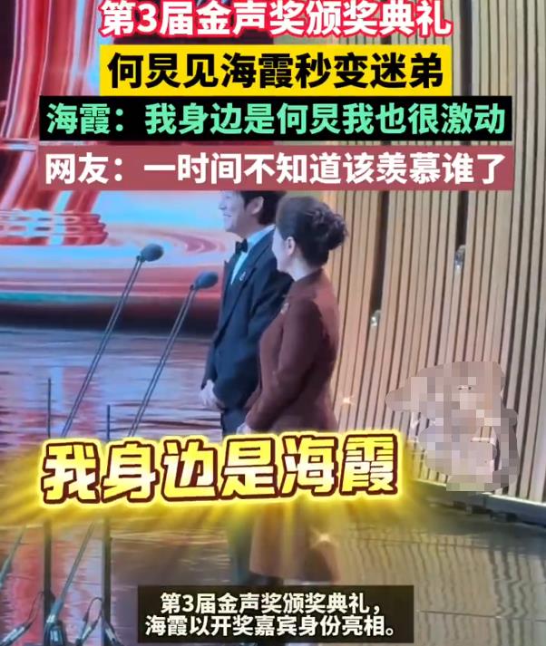 颁奖典礼上,当海霞老师站在何老师的旁边,自报家门“我是海霞”,旁边的何老师顿时激动尖叫。