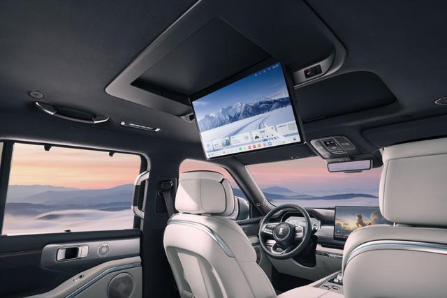 配置方面,前排配备全液晶仪表盘与大尺寸悬浮式中控屏,搭配三辐式多功能方向盘。材质运用上,座舱大面积采用软性材质包裹,座椅为双拼色设计,表面点缀菱形纹造型,填充厚实饱满。此外,新车后排还配备可翻折吸顶屏、天窗以及二排隐私帘等。