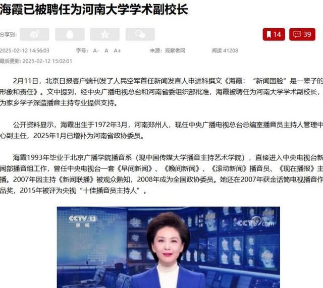 她丈夫罗永章是清华教授,搞抗肿瘤药的。两人没合拍过综艺,也没发过合影。但央视科普节目《科技之光》片尾字幕里,常有他团队的名字,审的是药理术语;海霞播完一篇关于癌症早筛的新闻,后台会收到他发来的两句话备注:“这个指标临床还没普及”“这个词建议换成‘初筛阳性’”。这种配合,没热搜,但挺实在。