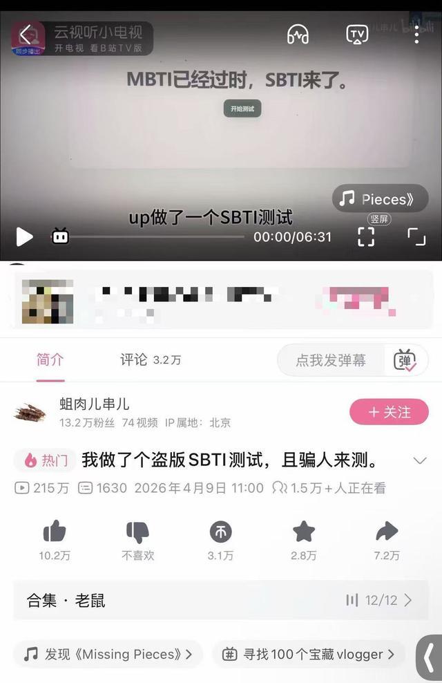 4月9日上午11时,一名B站(哔哩哔哩)博主发布视频《我做了个盗版SBTI测试,且骗人来测》,并提供了测试链接。该套SBTI测试复刻了此前网络爆火的MBTI的答题框架,但本质上是一个恶搞性质的娱乐产品。