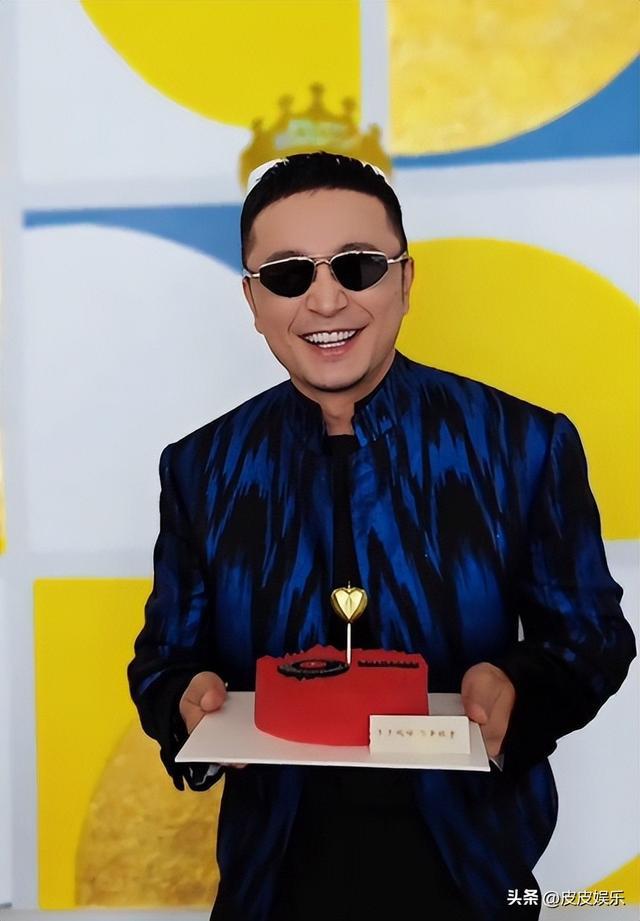 就见尼格买提一脸笑意地看向镜头,等旁边的人给他戴上生日帽之后,另一边又伸过来一副墨镜给他戴上。